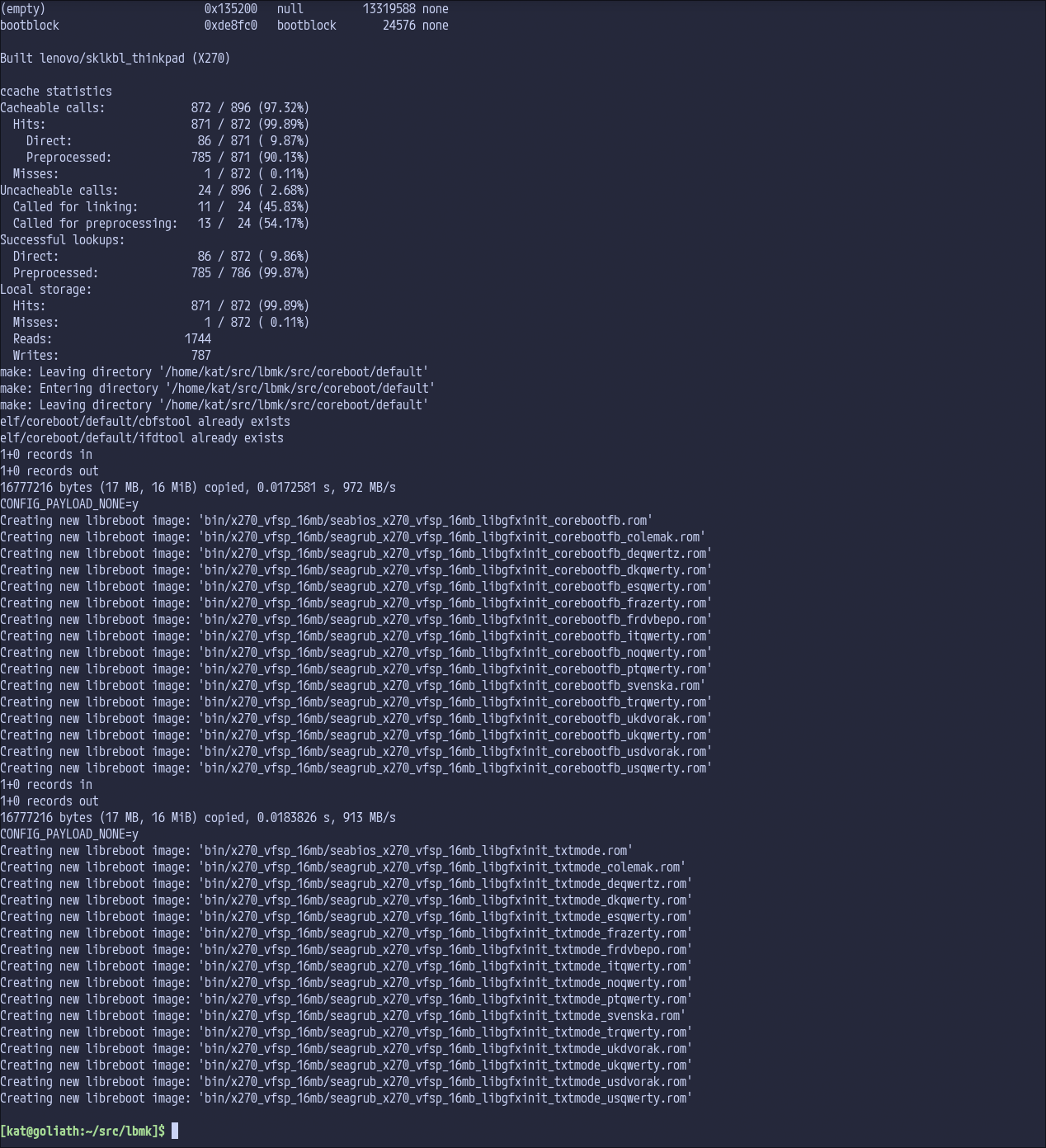 In my post from 2026-02-18, I committed myself towards helping work on coreboot + libreboot with the goal of porting it to the X270. It’s less than a week later and I have done it. My X270 is a 20HM model and this means that it is a Kaby Lake CPU (and chipset), not Skylake.