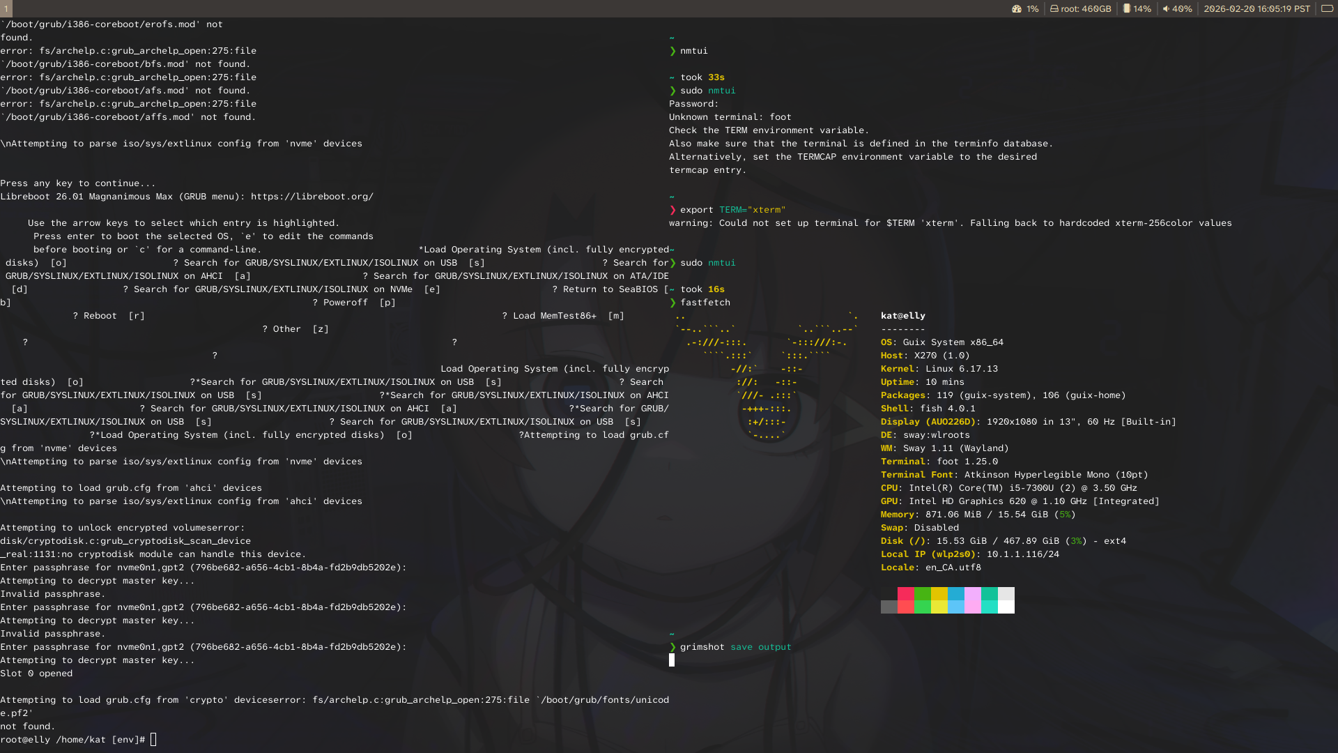 I can’t recommend libreboot enough, or even heads if libreboot isn’t your speed. A big thanks to Leah Rowe for their assistance and the work they have done for libreboot over the years.